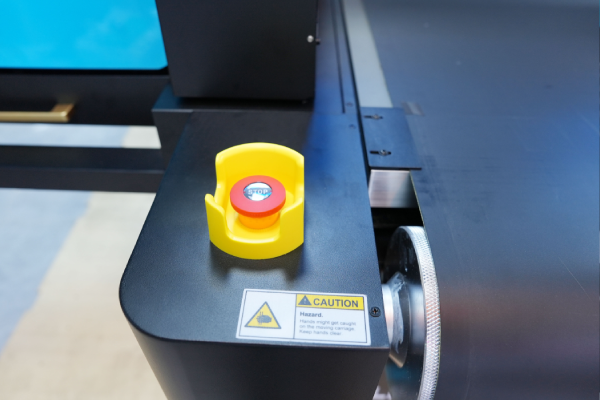 Equipped with an emergency stop button for immediate shutdown and enhanced operator safety. Provides secure control for industrial UV DTF printing machine environments.