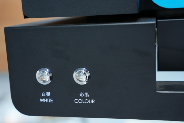 Independent white and color ink control improves printing flexibility and ink management. Optimized for high-opacity white output in commercial UV DTF printing applications.